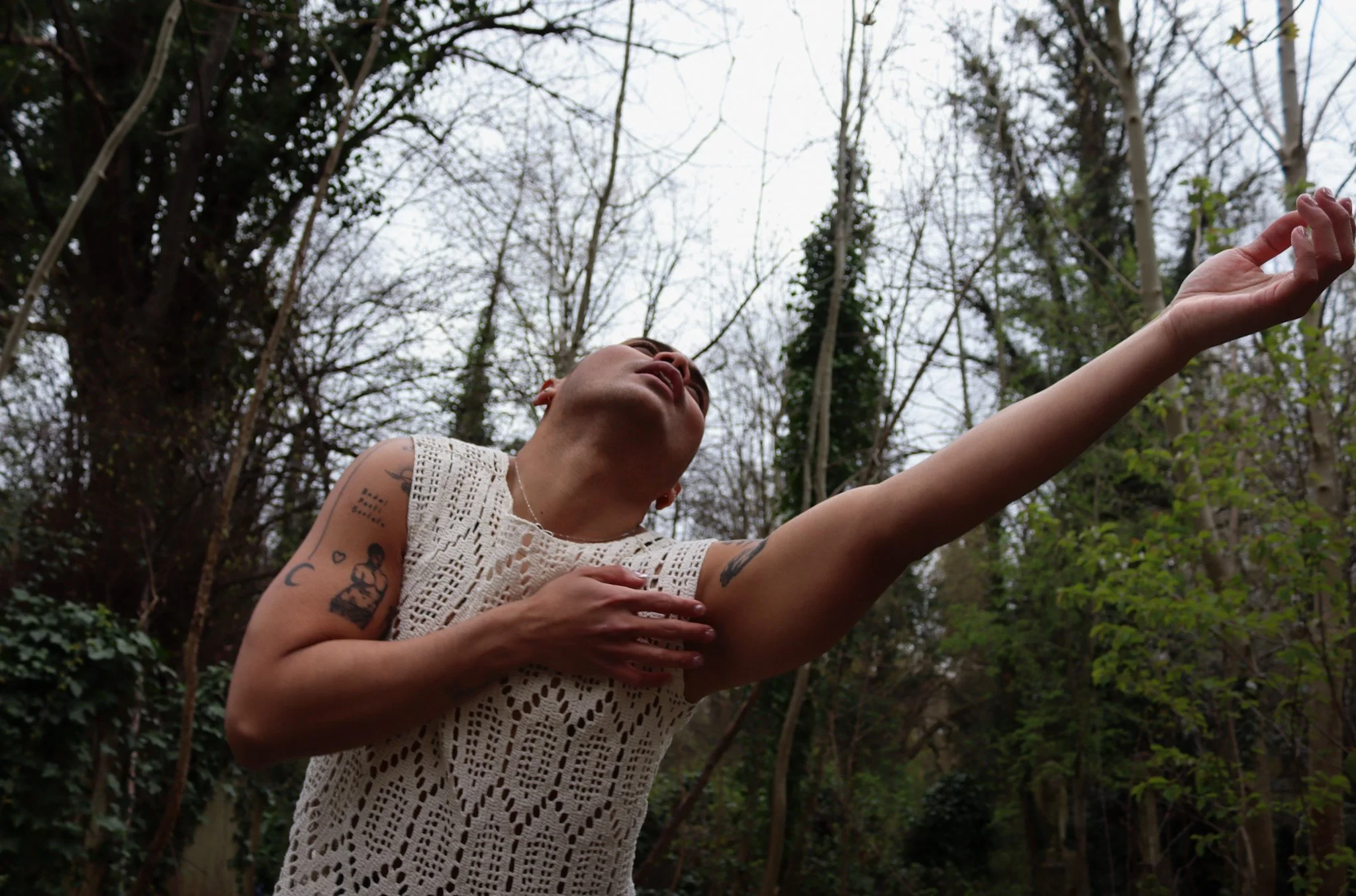 Shot in quiet woodland on the edge of London, this photography series is a queer exploration of presence and expression, blurring portraiture and performance.